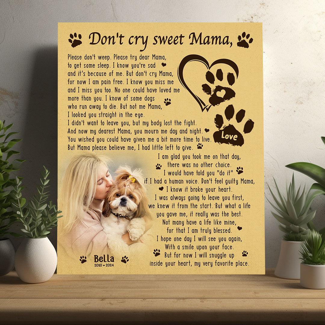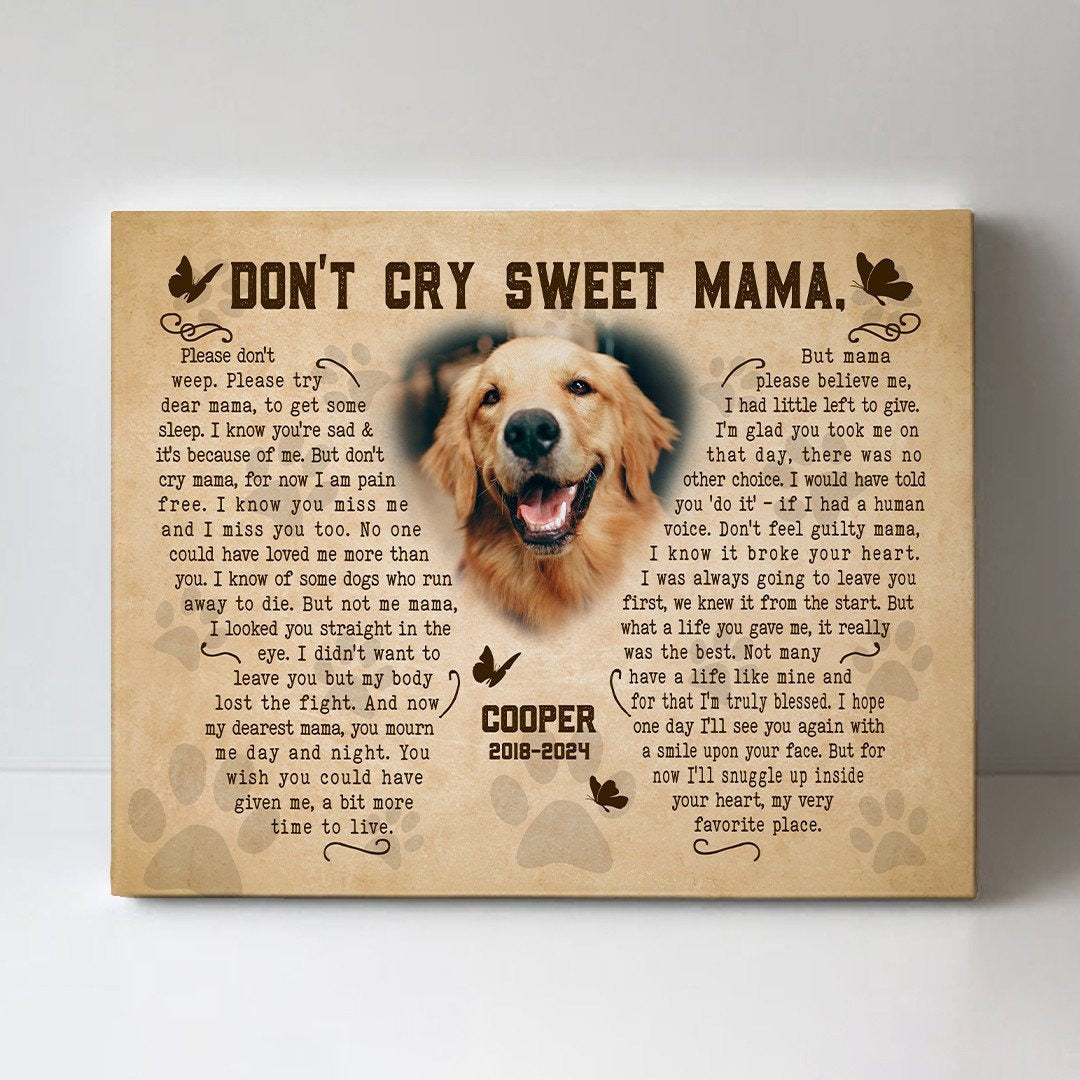 Don't Cry Sweet Mama Dog Poem | Custom Dog Memorial Canvas Print