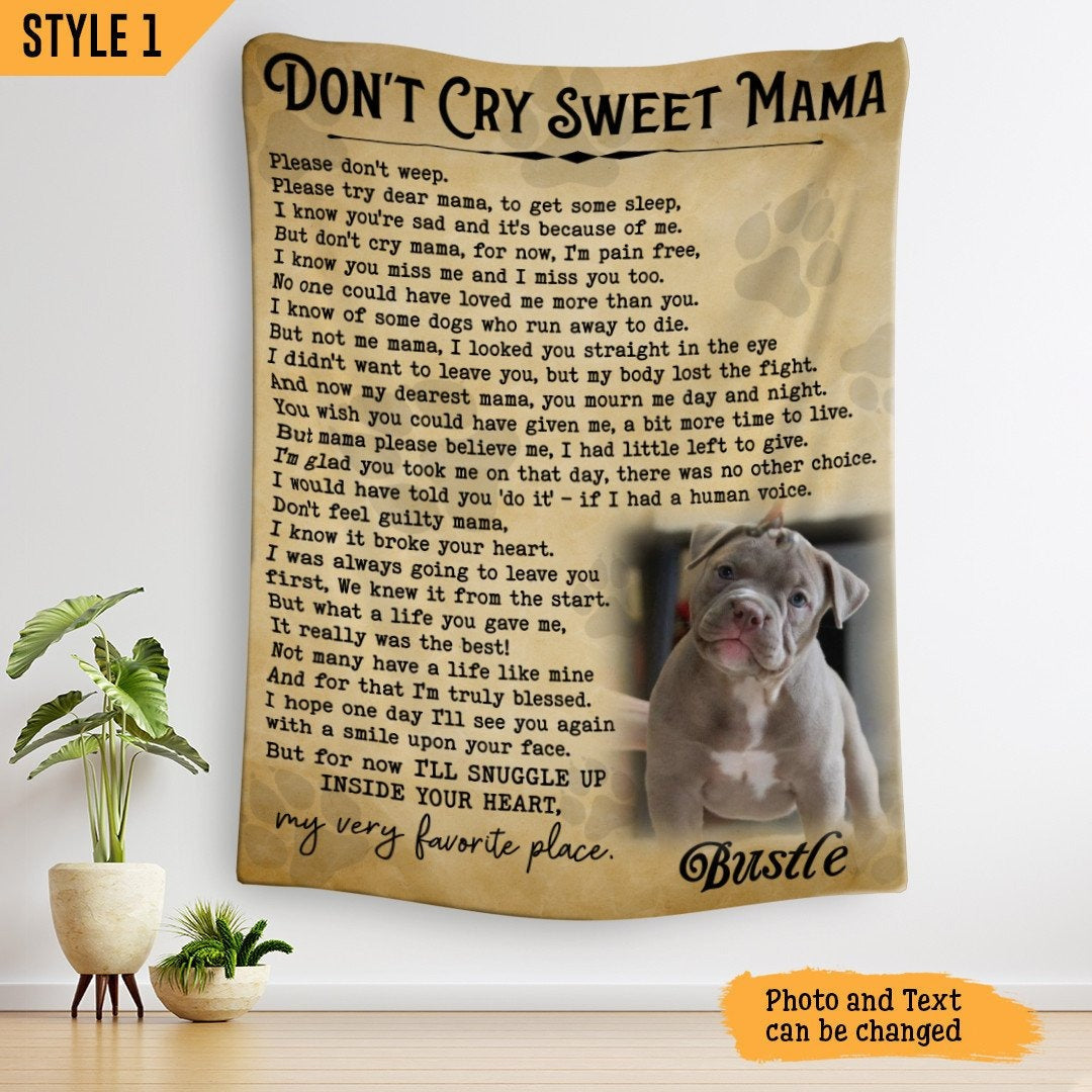 Don't Cry Sweet Mama Dog Poem | Custom Dog Memorial Blanket Print