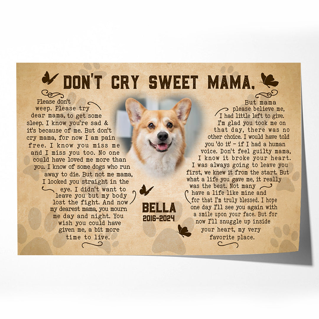 Don't Cry Sweet Mama Dog Poem | Custom Dog Memorial Poster Print