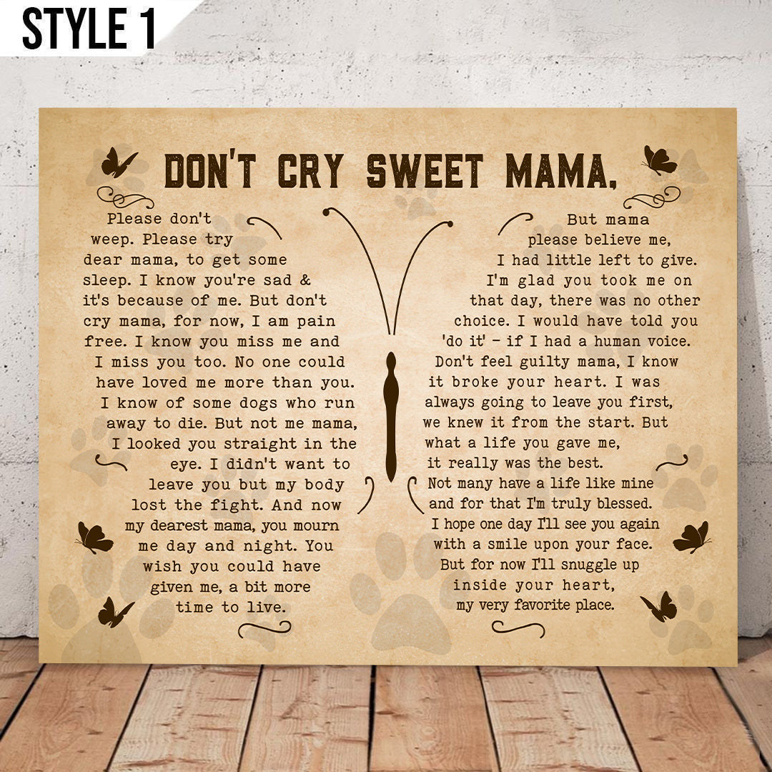 Don't Cry Sweet Mama Dog Poem | Custom Dog Memorial Canvas Print