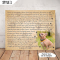 Our custom canvas dog memorial gifts are the perfect way to honor and remember a beloved furry friend. Whether you're a dog lover or a dog owner, our selection of dog remembrance gifts will provide comfort and solace during a difficult time. Choose from our in loving memory canvas options to find the perfect dog bereavement gift for someone who has lost their canine companion. Our dog sympathy gifts include personalized text and photos to create a unique and heartfelt keepsake for the memory of a special dog.
