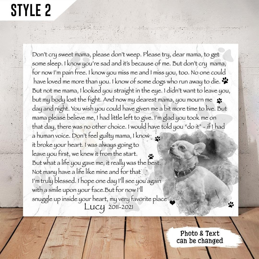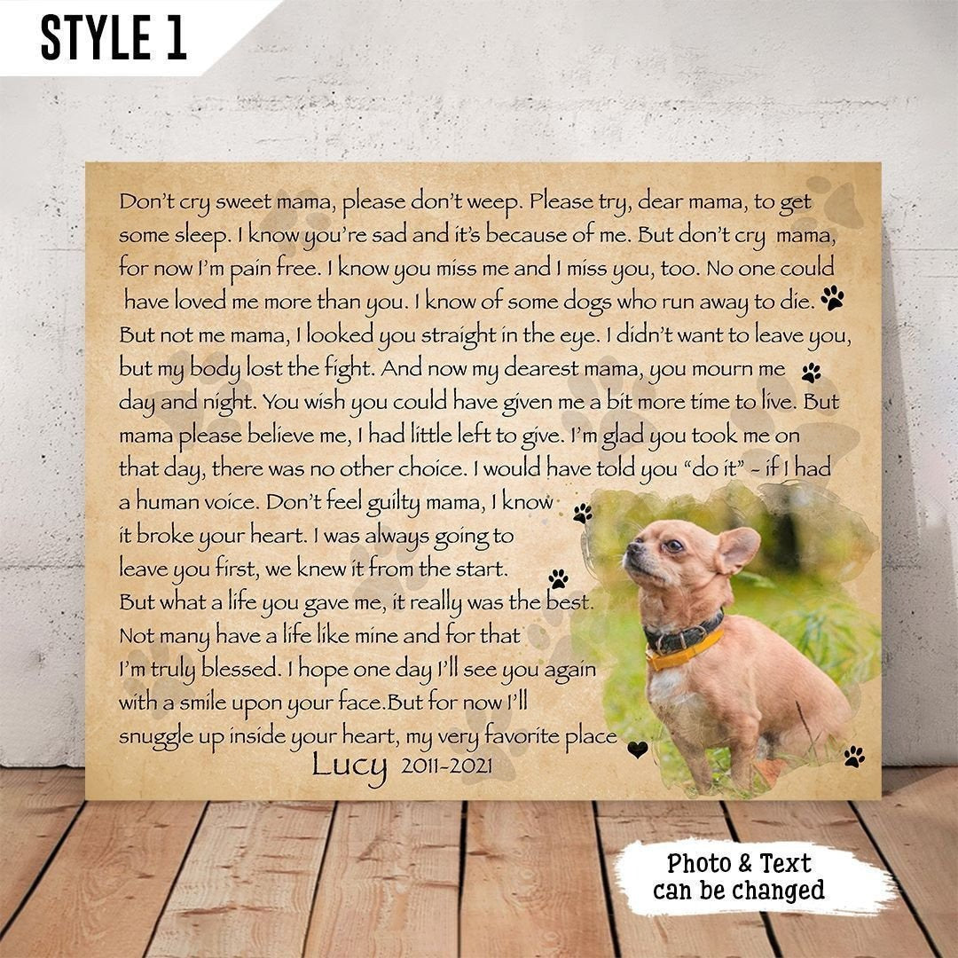 Don't Cry Sweet Mama Dog Poem | Custom Dog Memorial Canvas Print