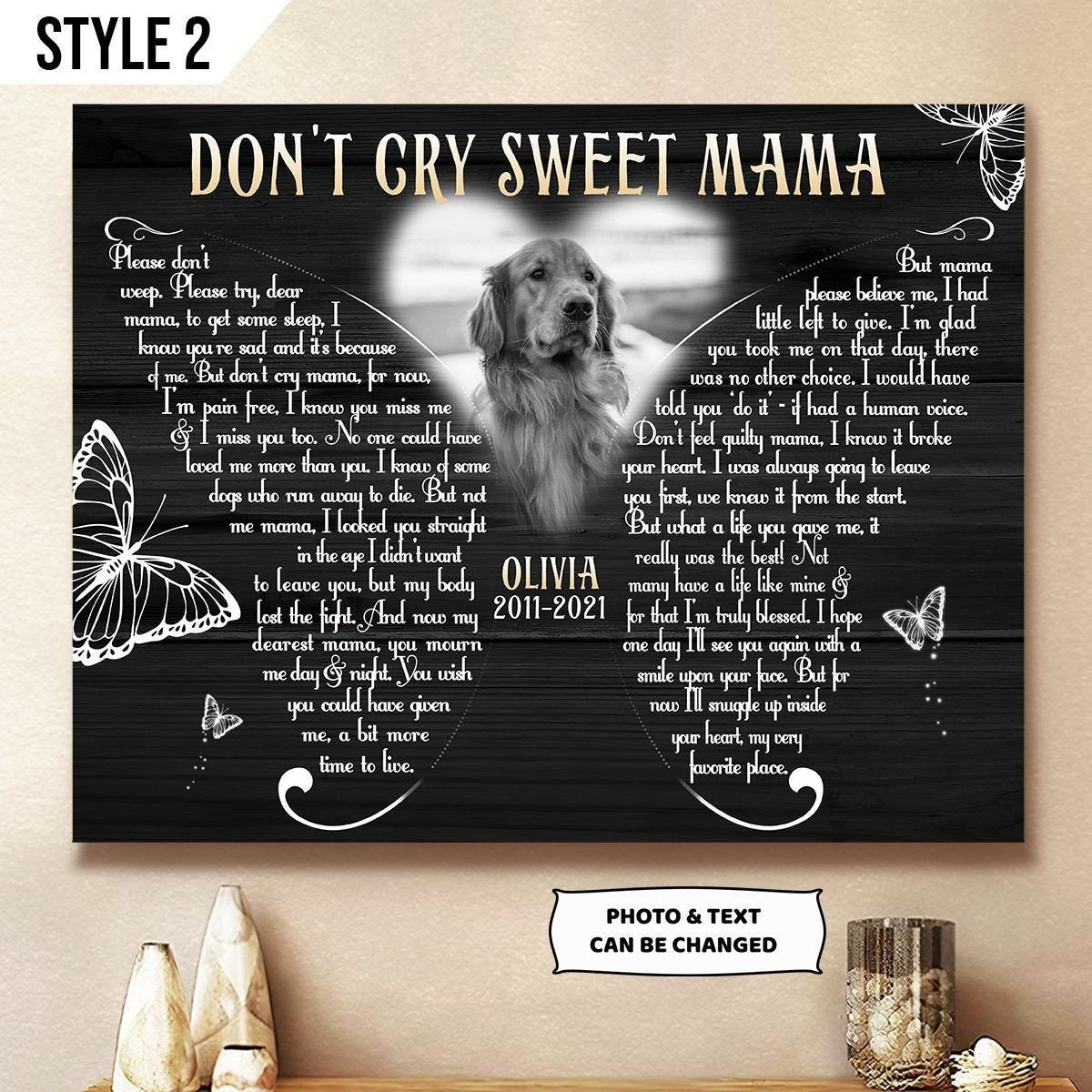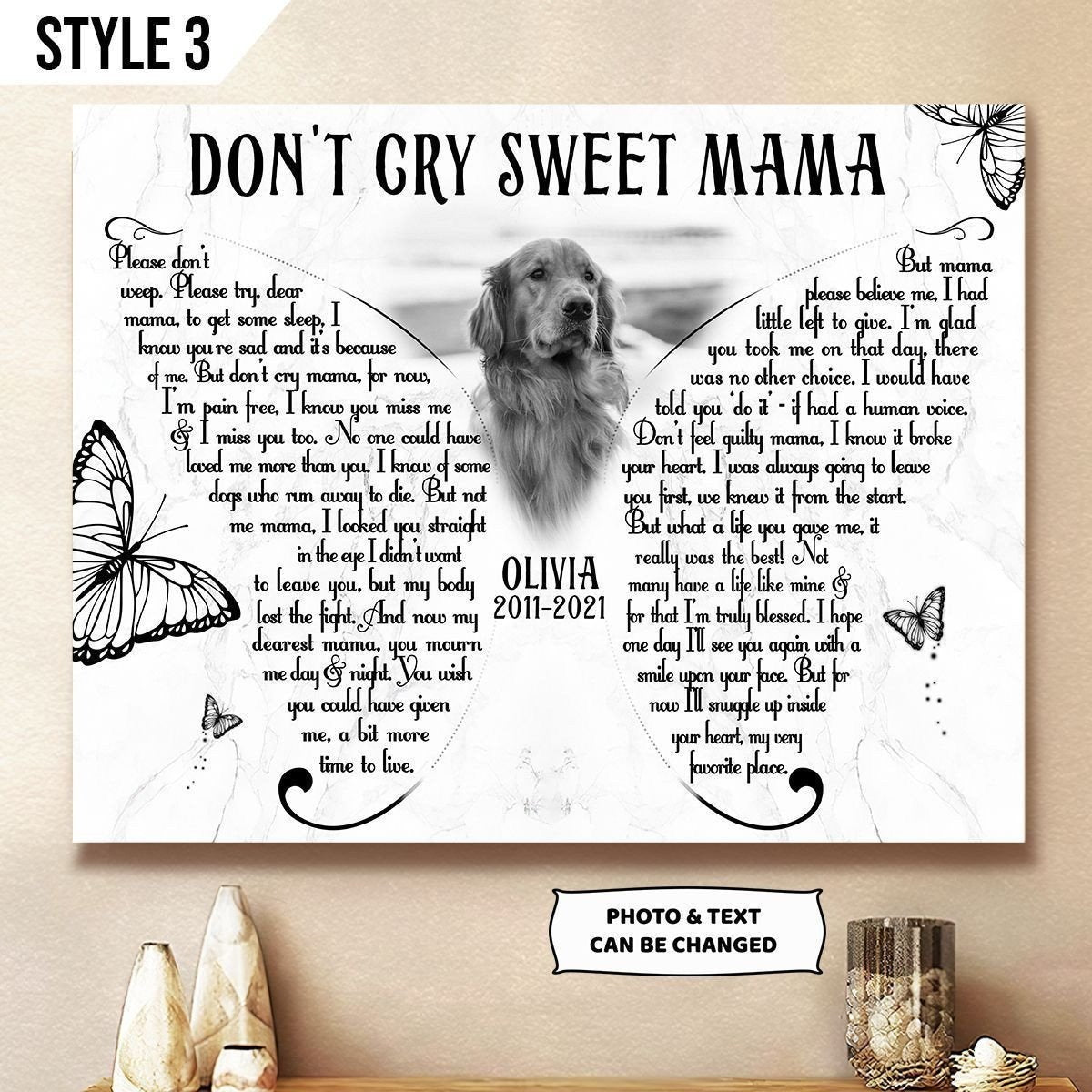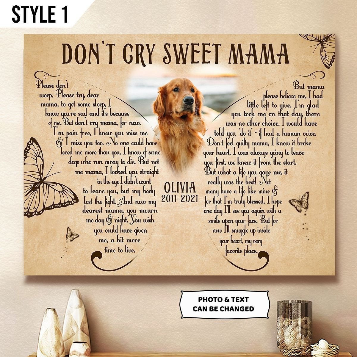 Don't Cry Sweet Mama Dog Poem | Custom Dog Memorial Canvas Print | Butterfly Shape