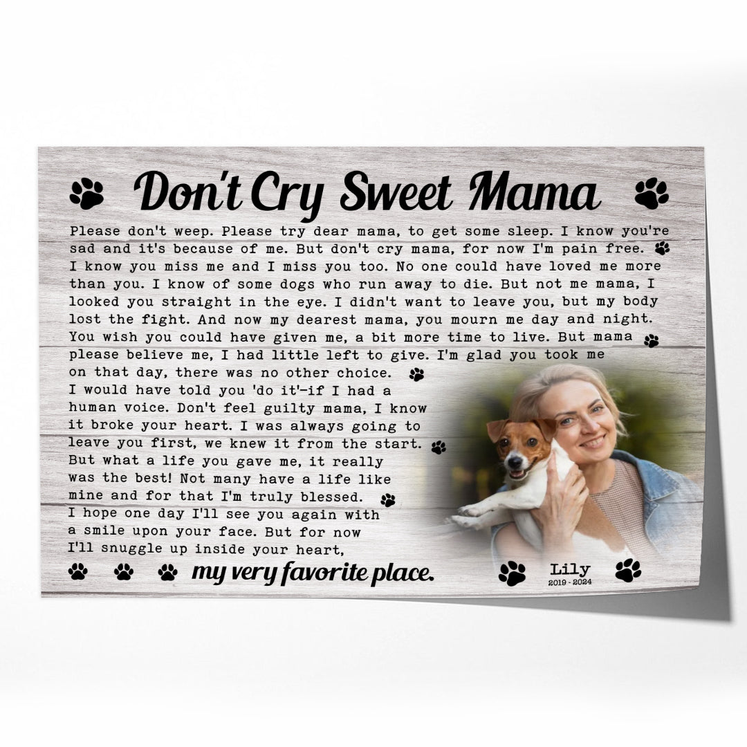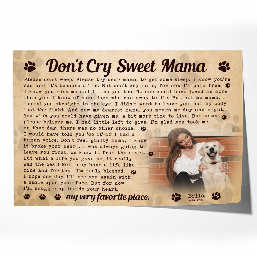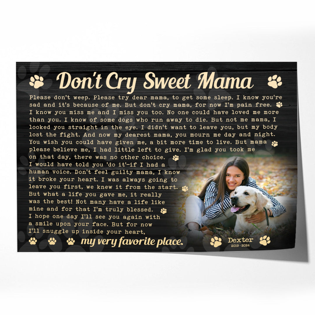 Don't Cry Sweet Mama Dog Poem | Custom Dog Memorial Poster Printing