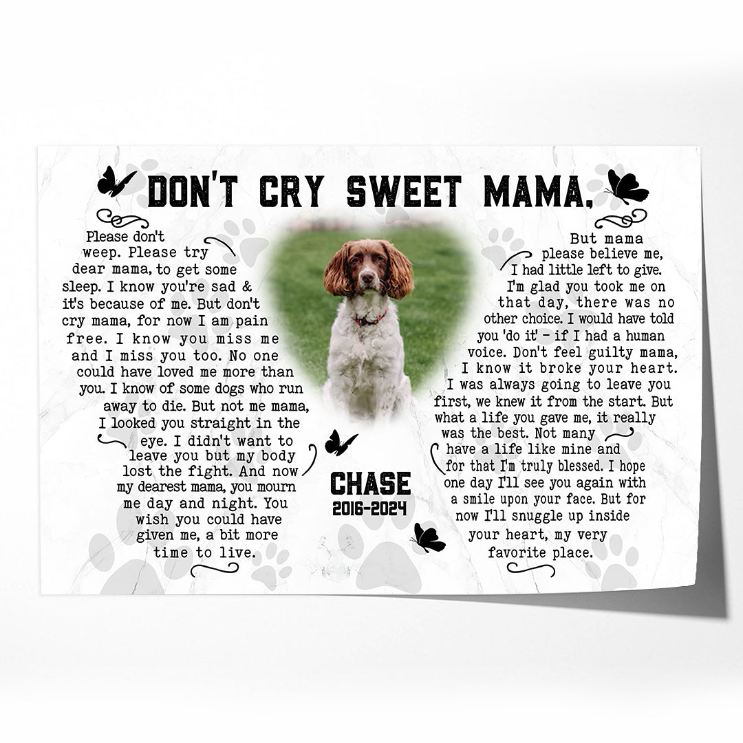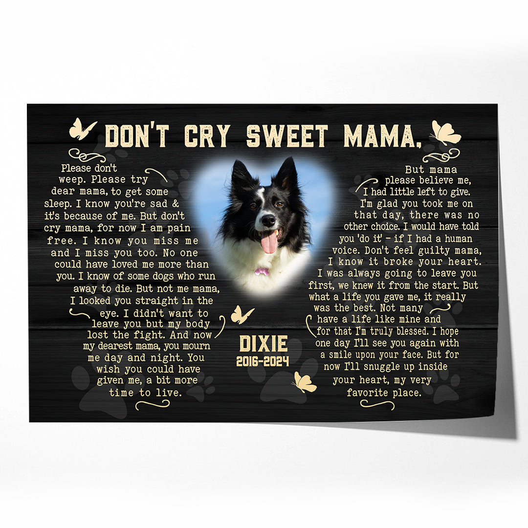 Don't Cry Sweet Mama Dog Poem | Custom Dog Memorial Poster Printing | Butterfly Shape
