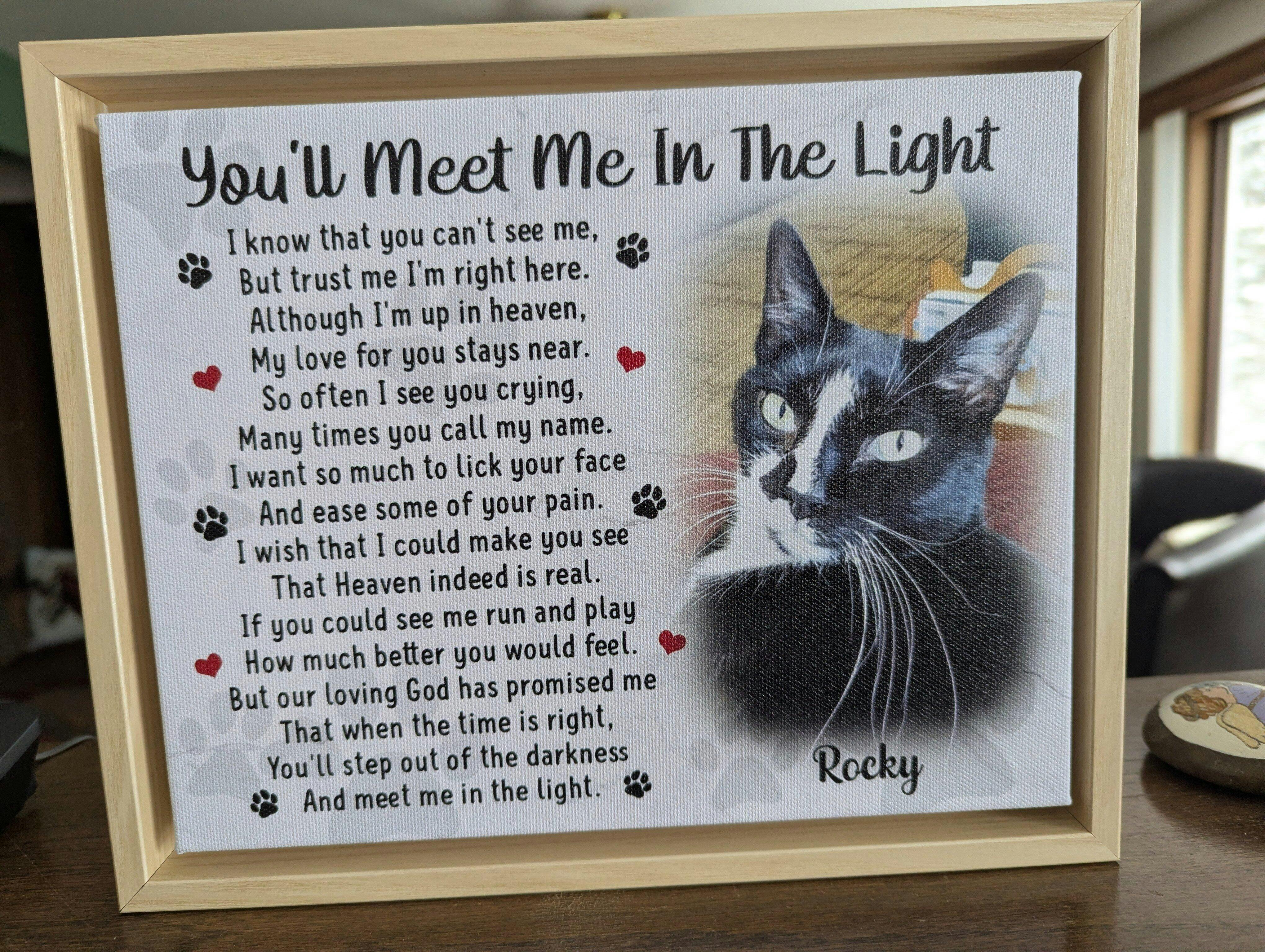Remember your beloved feline friend with our cat memorial canvas. Our cat remembrance gifts are a meaningful way to show your love and support during this difficult time. Choose from our selection of cat loss gifts to find the perfect keepsake for your cat lover friend. Our cat bereavement gift options include personalized text and photos to create a one-of-a-kind sympathy gift for the loss of your cat.