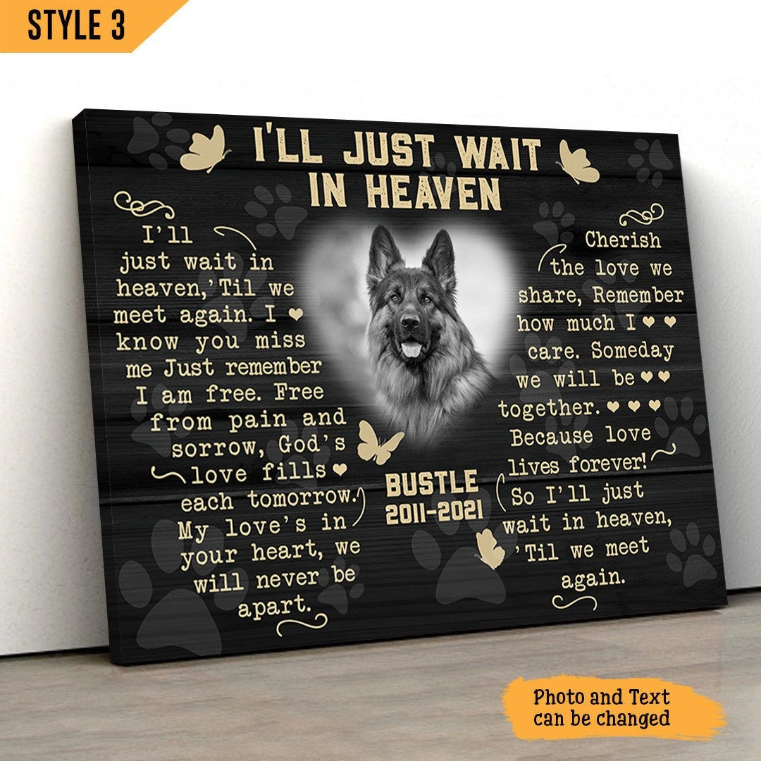 I'll Just Wait In Heaven Dog Poem | Custom Dog Memorial Canvas Print | Butterfly Shape